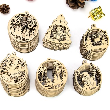 Decorazioni natalizie 2024 2023 laser taglio legno ornamento di natale in legno albero di natale ornamento